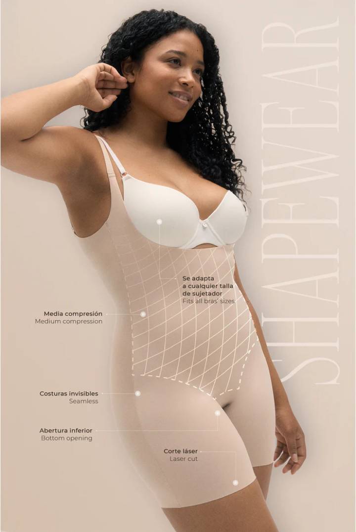 Body up reductor de tirantes con pantalón de corte láser que proporciona confort y que la prenda no se marque. Media compresión y abertura inferior.
