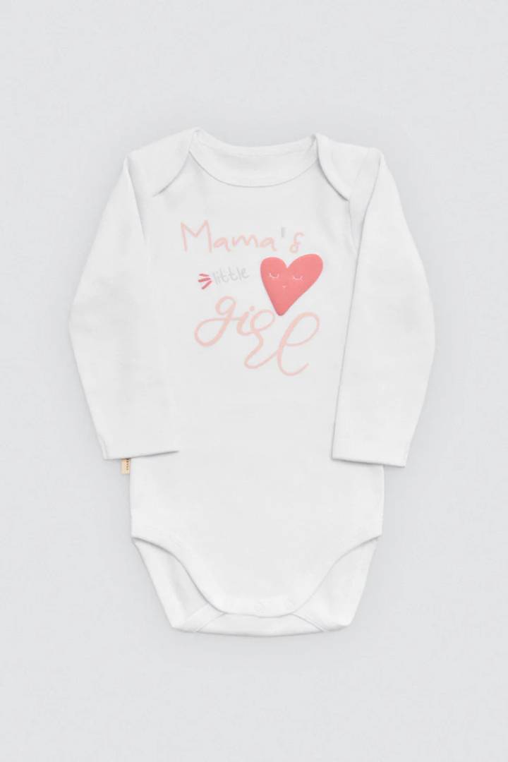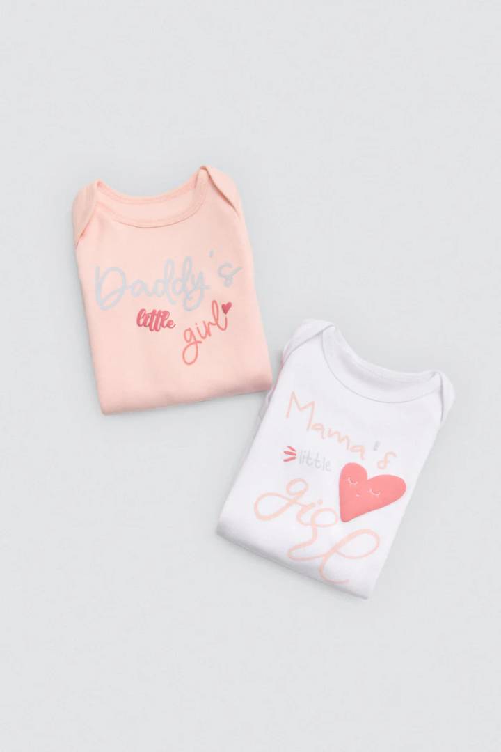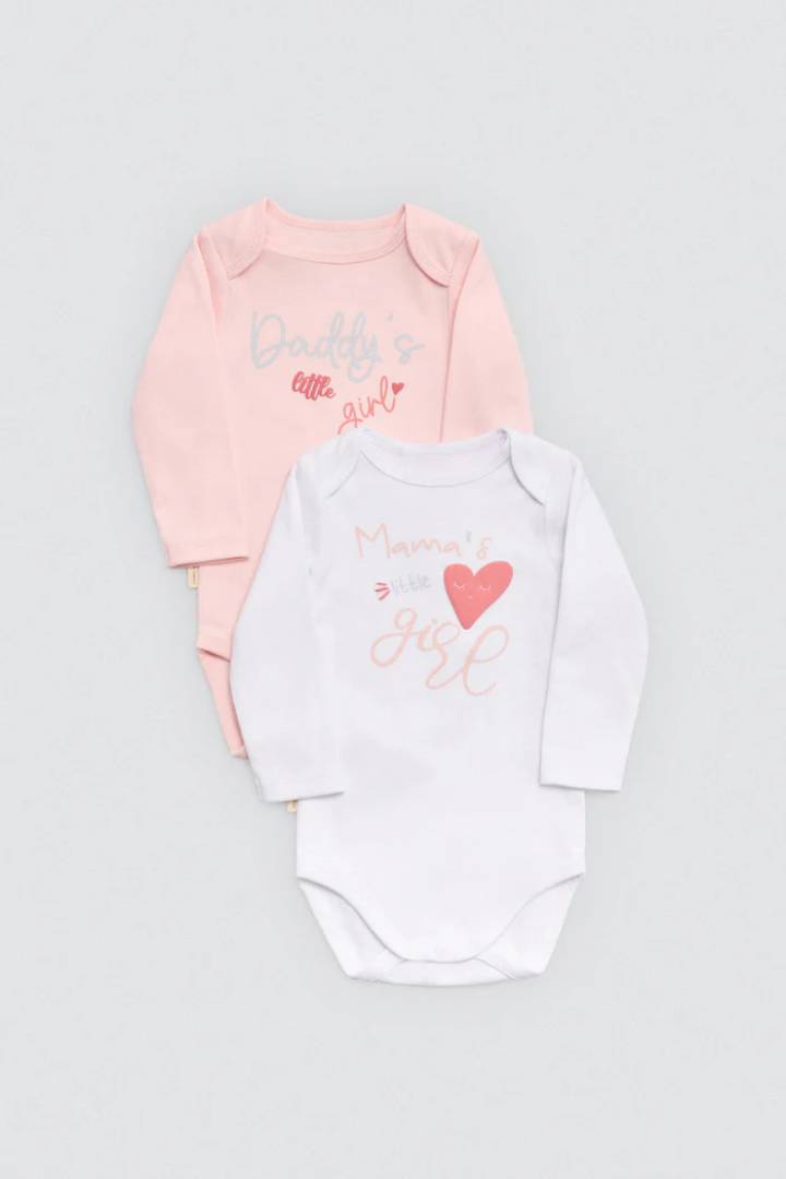 Bodys de manga larga pack 2 para bebé niña con interior afelpado. Tejido de algodón natural con mensajes estampados. Suaves, cómodos y perfectos para uso diario o regalar.
