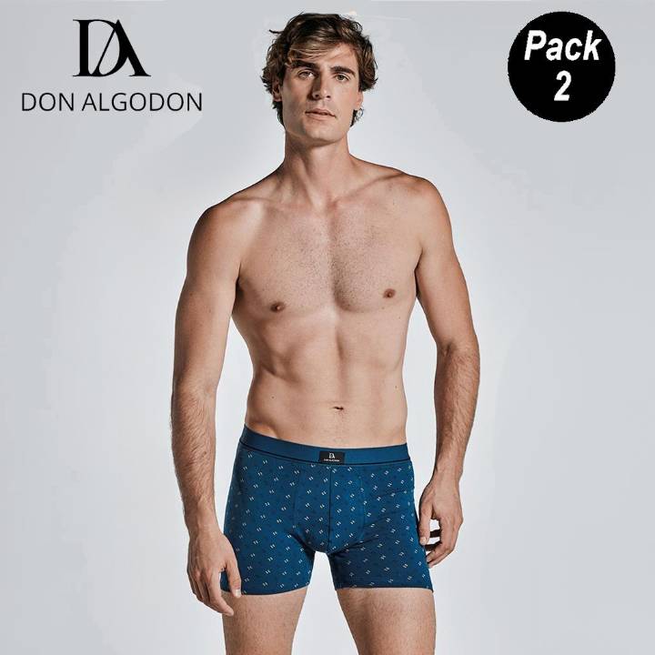 Bóxer hombre pack 2 de algodón con fantasía en la goma con el logo de la marca y un patrón moderno. Los packs se componen de un calzoncillo liso y otro estampado. Disponible en tres surtidos diferentes.