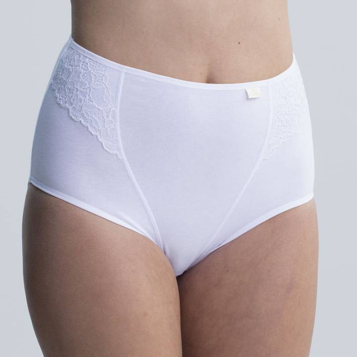 Braga alta está fabricada en tejido de algodón, un material muy suave y anti alergénico para evitar rozaduras incomodas y posibles alergias producidas en pieles sensibles o por el calor. Además, lleva aplique de blonda en los laterales que le da un toque muy elegante al modelo, tiene cintura fina elástica que no oprime y rizo de algodón en zona íntima para darte un mayor confort. Esta prenda ha sido cuidadosamente confeccionada, utilizando materiales de la más alta calidad, lo que unido a su atractivo diseño le proporcionará una agradable sensación de comodidad.