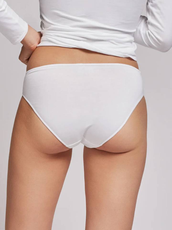 Braguita midi en tejido de algodón orgánico. Detalle de galón de encaje en cintura y camales.