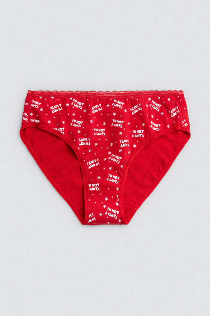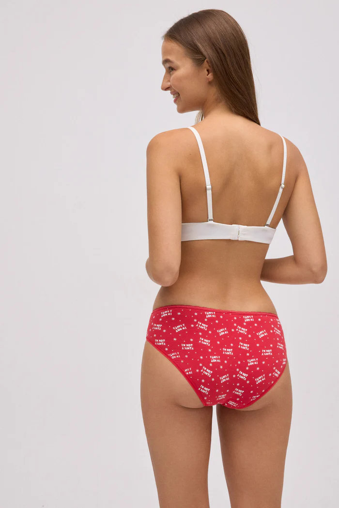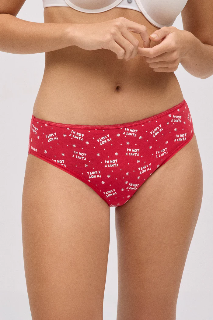 Algodón natural tejido suave, transpirable y perfecto para el uso diario. Corte midi con cobertura media-alta que se adapta cómodamente a la silueta. Acabados suaves con costuras planas y delicadas para una sensación de confort total. Estampado navideño con diseño invernal y festivo con un toque alegre y femenino. Perfecta para quienes buscan una braguita con sujeción, suavidad y un toque navideño. ¡Celebra las fiestas con estilo y bienestar!