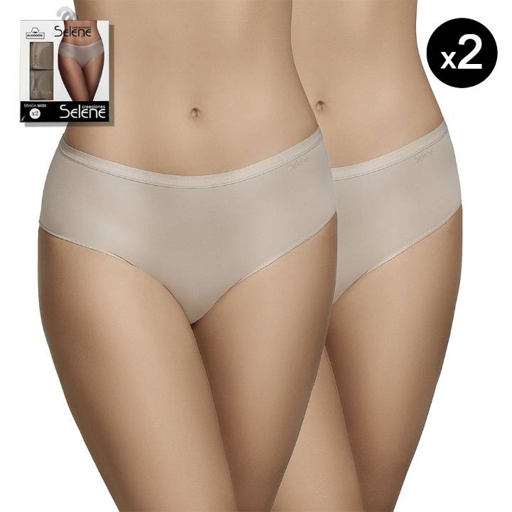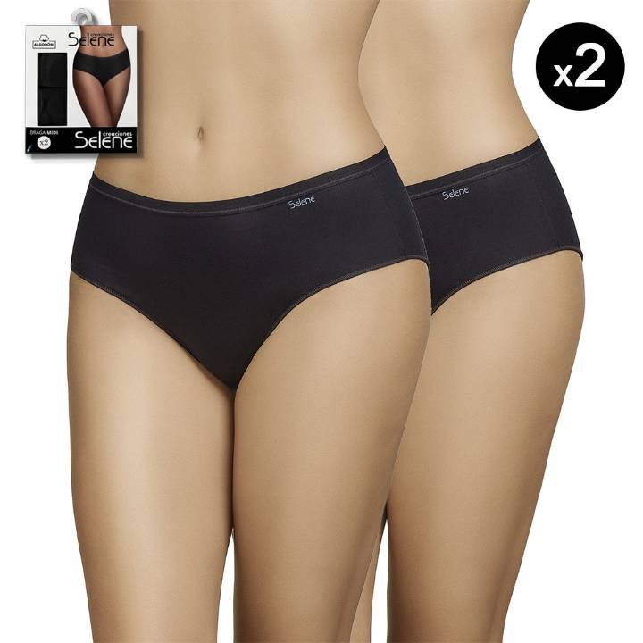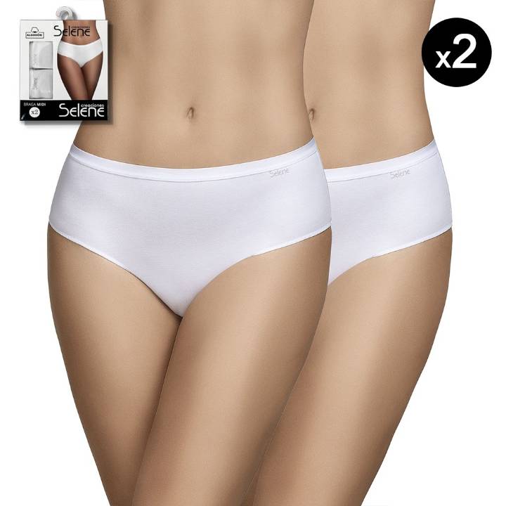 Bragas midi pack 2 Selene. Confeccionadas en suave y adaptable algodón elástico. Con fina cintura de goma vista cómoda y ligera que no oprime.