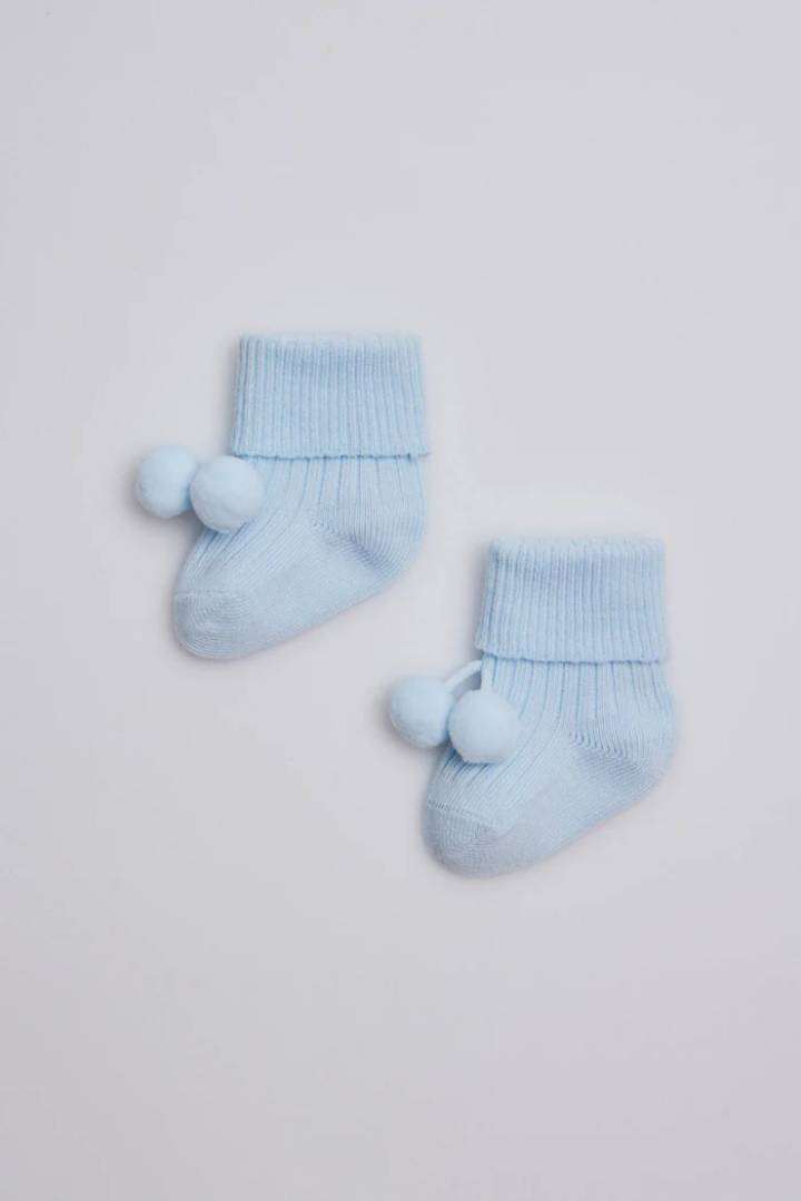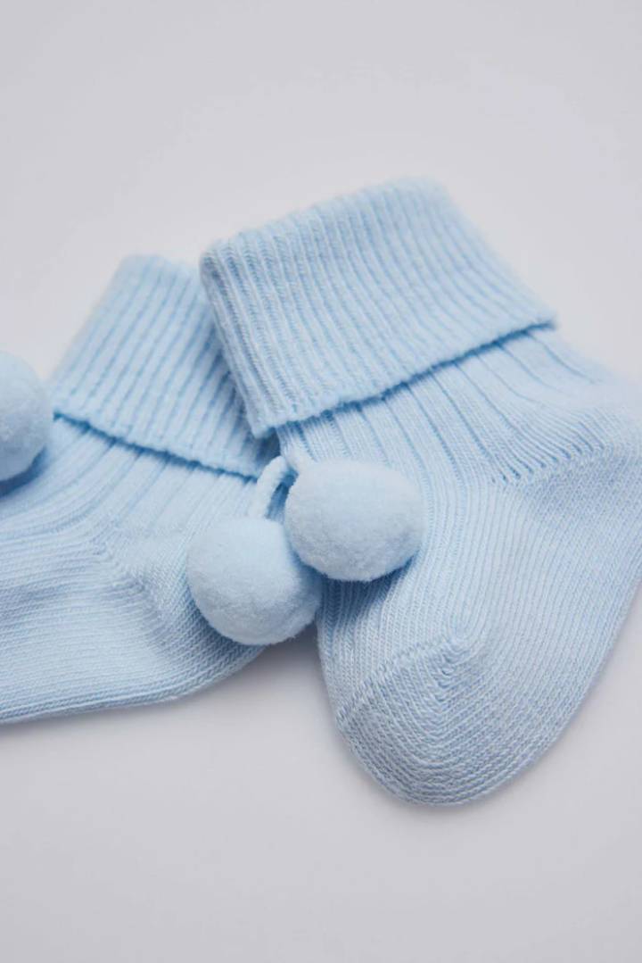Calcetín básico recién nacido. Tejido en suave algodón canalé, se ajusta ergonómicamente al pie del bebé evitando que deslice. Cuidado prenatal asegurado con el doble puño especial anti presión. Decorados con borlas, estos dulces calcetines son el confort necesario para los más pequeños de la casa.