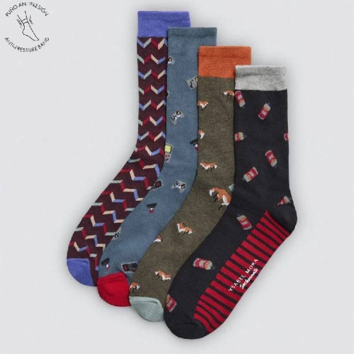 Calcetín hombre modelo largo, estampado completo con puño anti presión de la colección de Sockarrats.