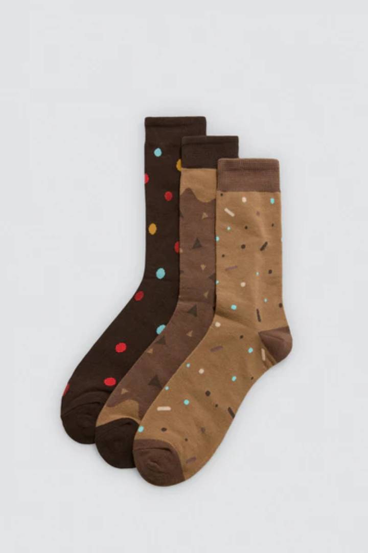 Pack para regalo de 3 calcetines estampados para hombre con puño anti presión.