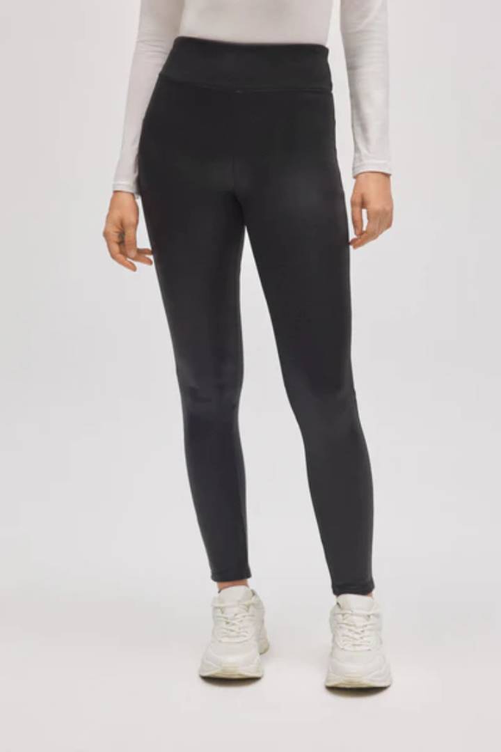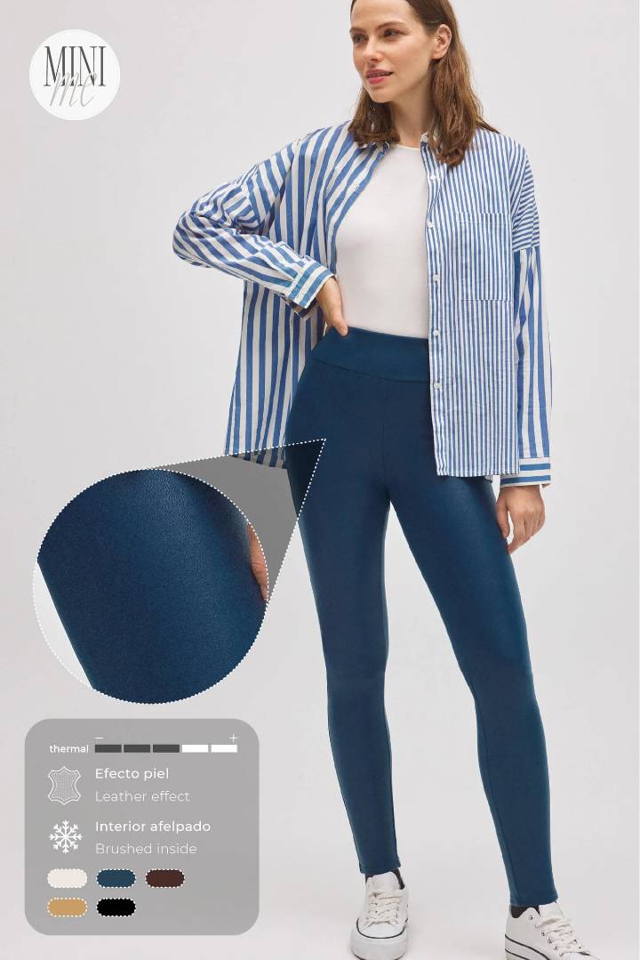 Leggings térmico efecto piel con goma ancha de talle alto y acabado efecto cuero. Una prenda versátil ideal para climas fríos. Nivel térmico medio. Perfecto para mantener la temperatura corporal en días fríos. Tejido efecto piel, acabado brillante y sofisticado que aporta estilo y modernidad. Tiro alto con goma ancha de compresión ligera para mayor comodidad y sujeción.