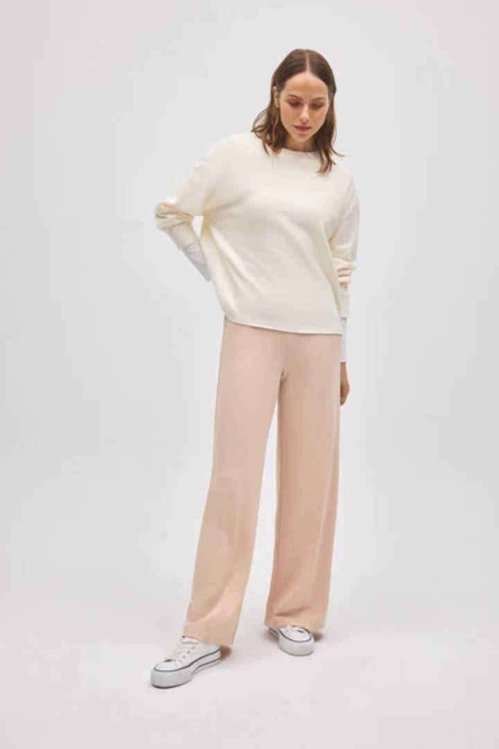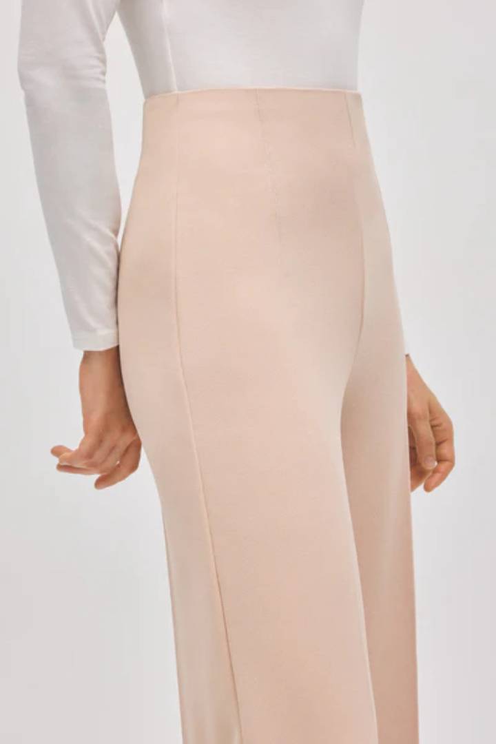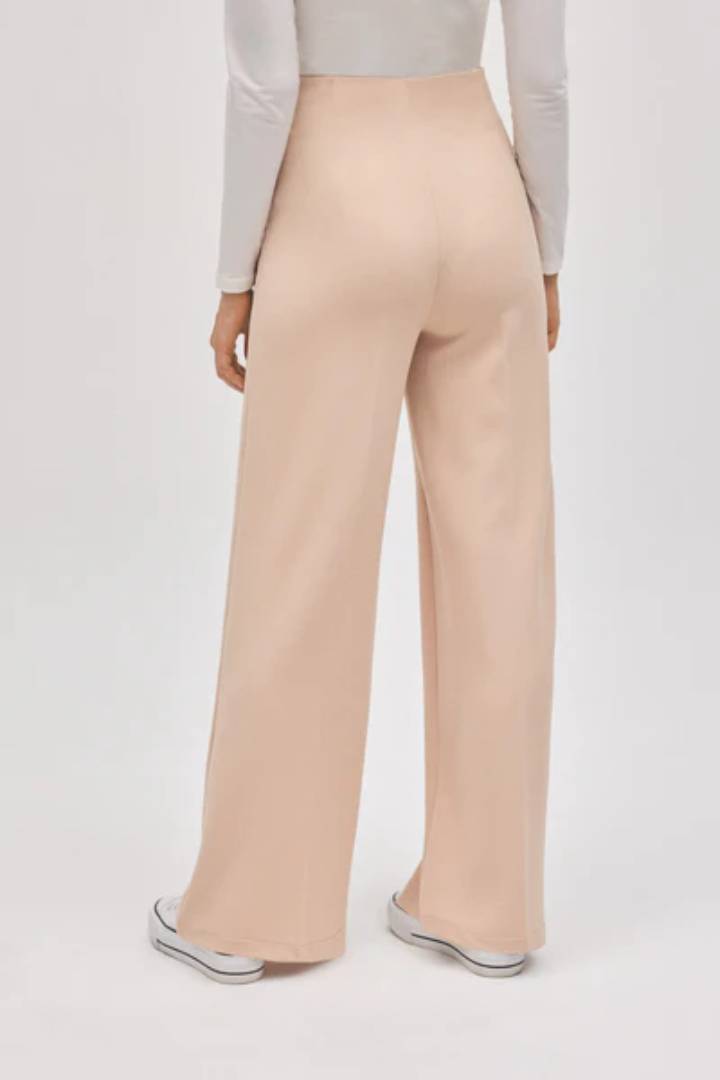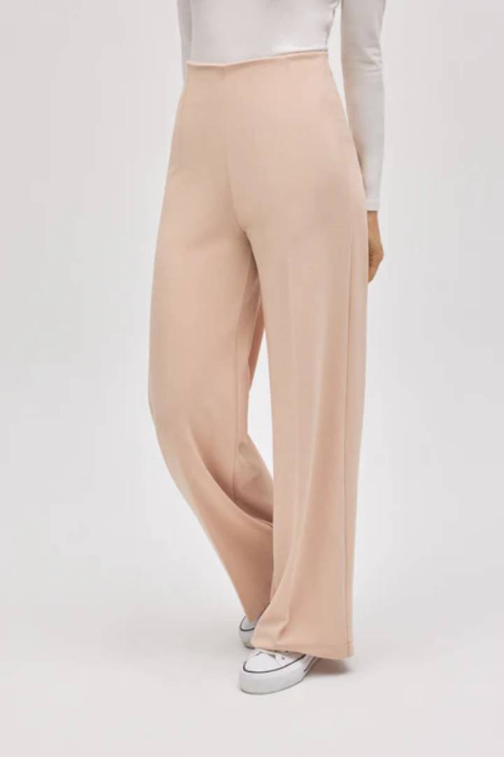Pantalón liso ancho. Elegante, suave y con un diseño minimalista, ideal para looks sofisticados y atemporales. Tejido con acabado suave, muy agradable al tacto, de textura efecto melocotón. Tiro alto que realza la figura y aporta comodidad. Pernera ancha para un estilo relajado y fluido. Goma elástica en la cintura que se adapta al cuerpo. Sin bolsillos ni costuras visibles diseño limpio y depurado. Perfecto para tu día a día: un básico con estilo.