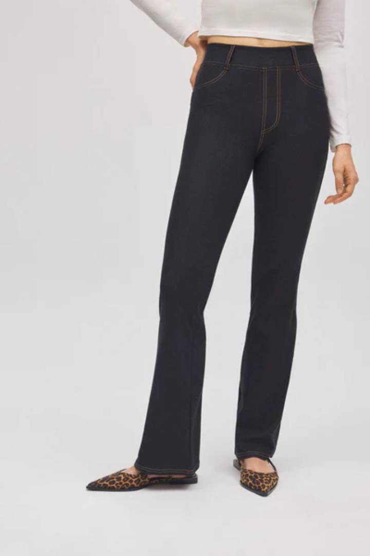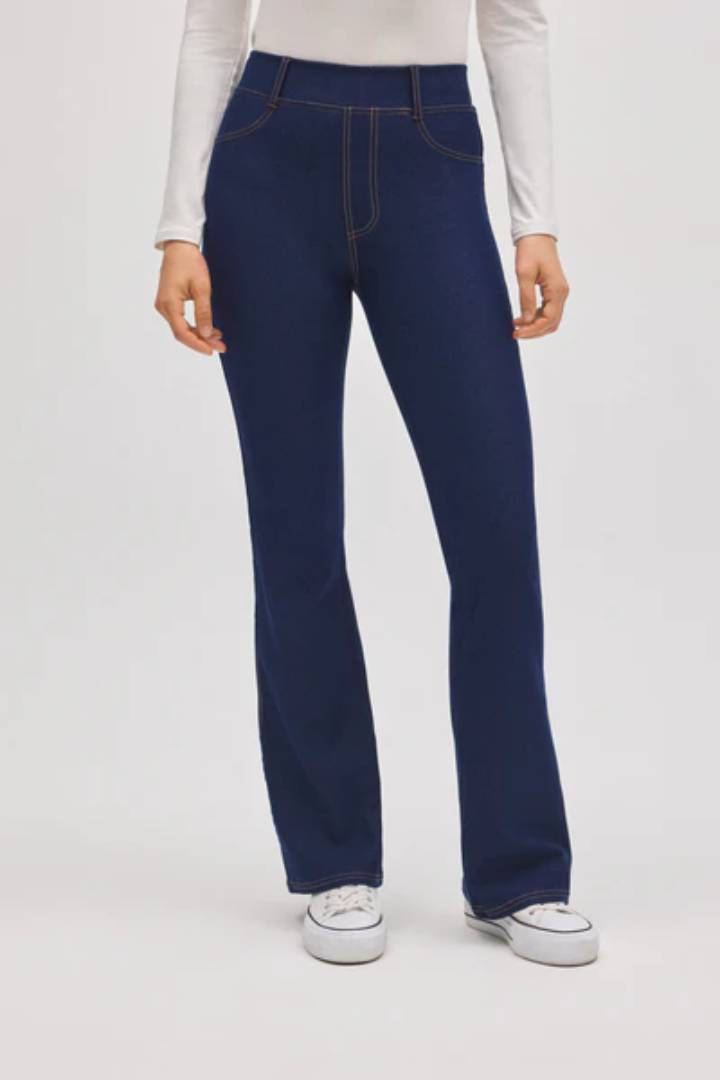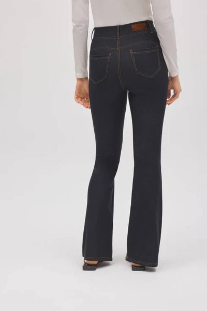 Pantalones vaqueros elásticos aportan comodidad y un toque retro. Tejido elástico se adapta a tus movimientos, ajustado en muslos y acampanado desde la rodilla. Con tacto agradable y durabilidad. Cintura alta con efecto estilizado. Estilo vintage con pespuntes a contraste.