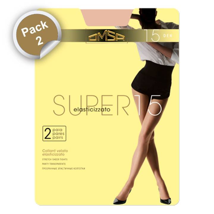Panty pack de 2 pantys finos y transparentes de 15 den, con demarcación y puntera reforzada Super 15 de alta calidad.