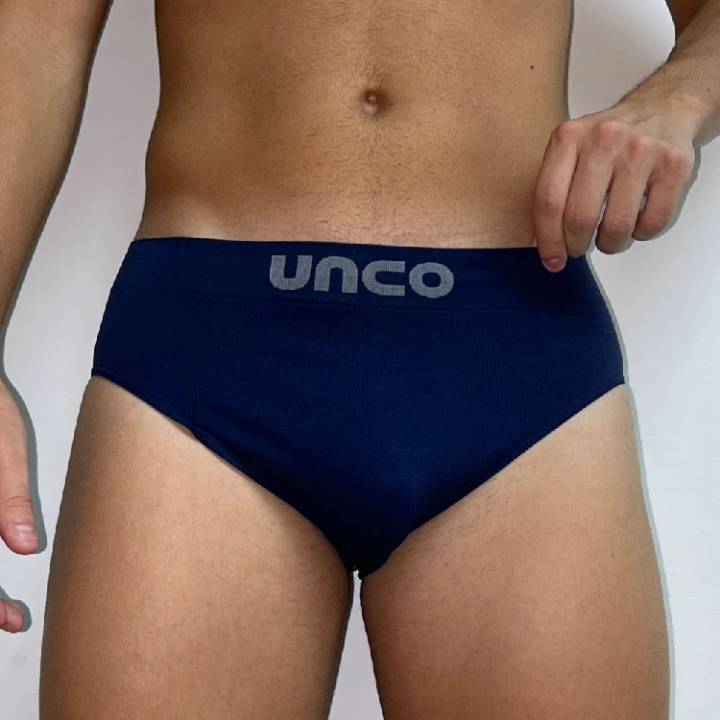 Slip licra hombre Unco sin costuras, goma ancha con estampado de la marca y con lycra.