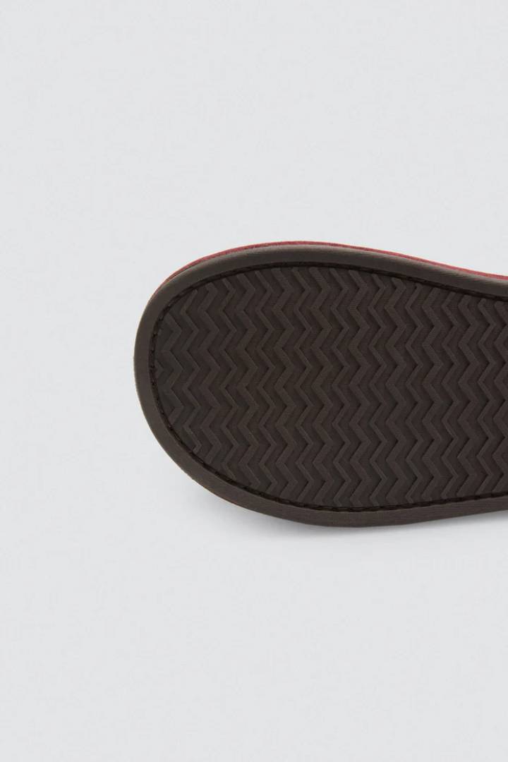 Zapatillas de casa están confeccionadas en un suave tejido jaspeado de tonos oscuros, combinados con detalles en color burdeos que le dan un contraste moderno y elegante. El ribete de acabado suave y la estructura resistente garantizan comodidad en cada paso. Un diseño que fusiona lo casual con un toque sofisticado, ideal para tu descanso en casa.
